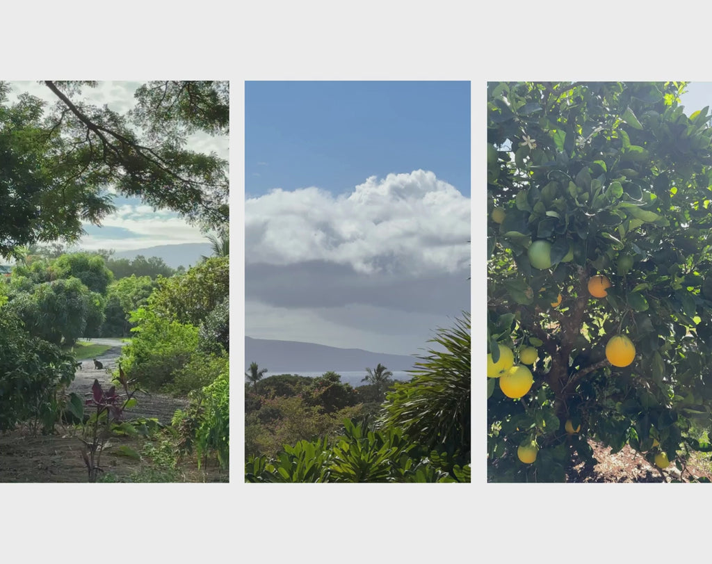 This seashell is from a series of coastal still lifes that emerged during a recent retreat to Maui where I stayed with friends in their fruit orchard overlooking a wide blue horizon. I gathered fruit, seashells, and found objects and arranged them on the table of their covered porch. As the rain fell for hours, I painted. There's a casual elegance to these compositions that holds the feeling of that time — unhurried, intimate, joyful.