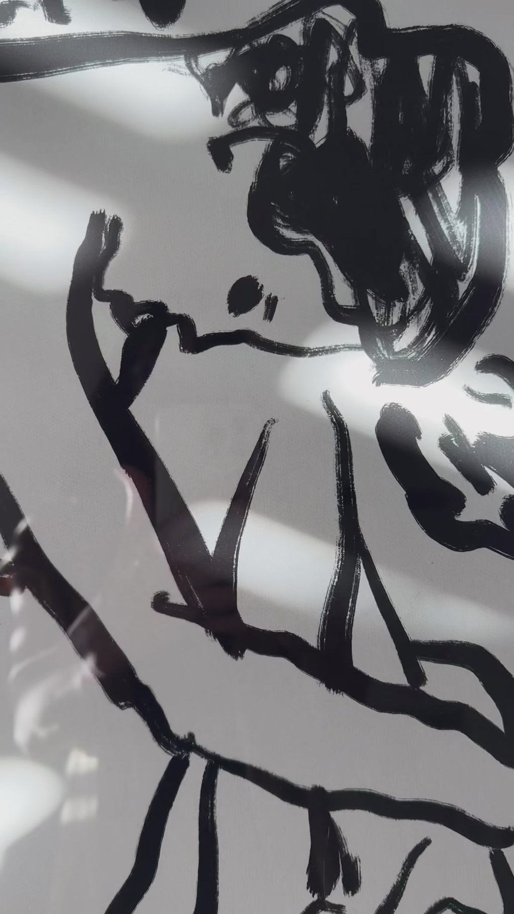 Museum-quality giclée print on 100% cotton, semi-smooth matte paper using archival pigment inks. Ewen's inky black sketch on a sophisticated warm-grey neutral paper with a white border is the essence of simple elegance.