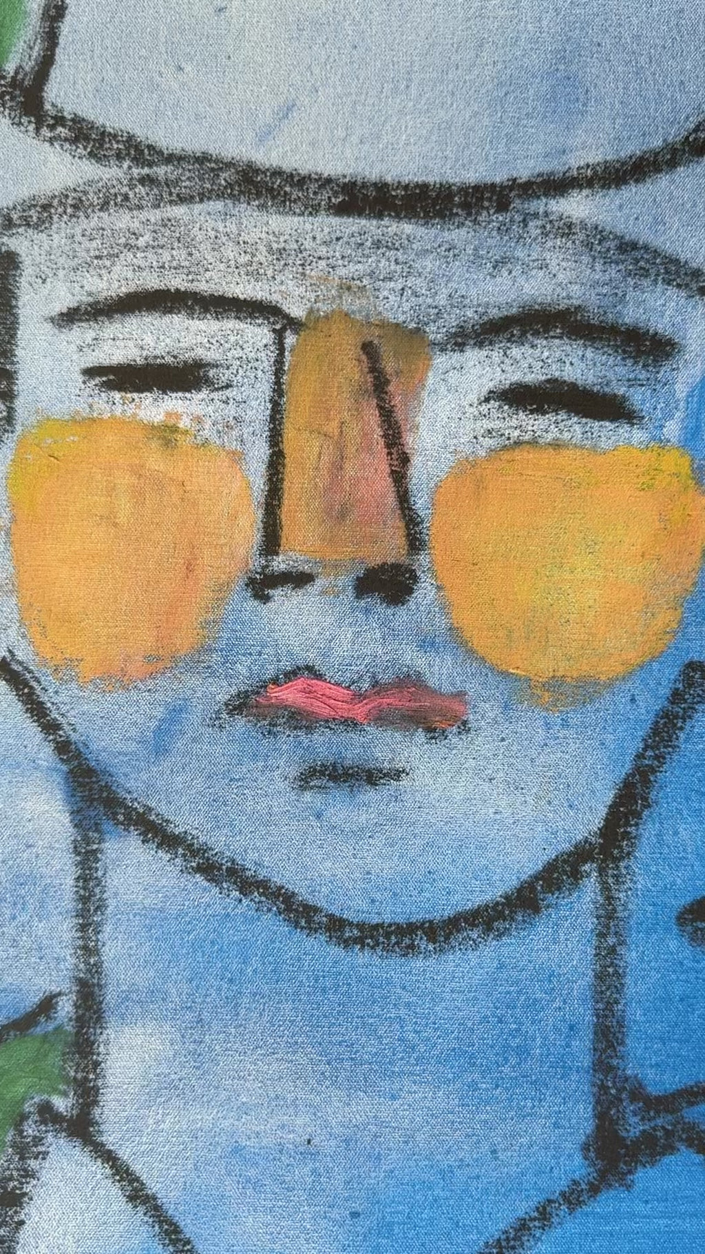 From my recent series of original oil paintings, The Guardians. Someone who stands tall and faces what’s coming with depth, integrity, skillfulness. I painted them with qualities I hoped to summon in myself: strength, courage, grounded presence, calm confidence. In this series, my expressive impasto brushwork shows up in the bright colors of the faces and the vivid backgrounds — but much of the gestural energy comes through a different medium: painterly drawing with oil paint stick. I’ve loved exploring how bold, confident linework plays against washes of underpainting, creating dynamic contrast and movement. I found myself especially drawn to the shadows cast by a hat across a face — a motif I returned to again and again.