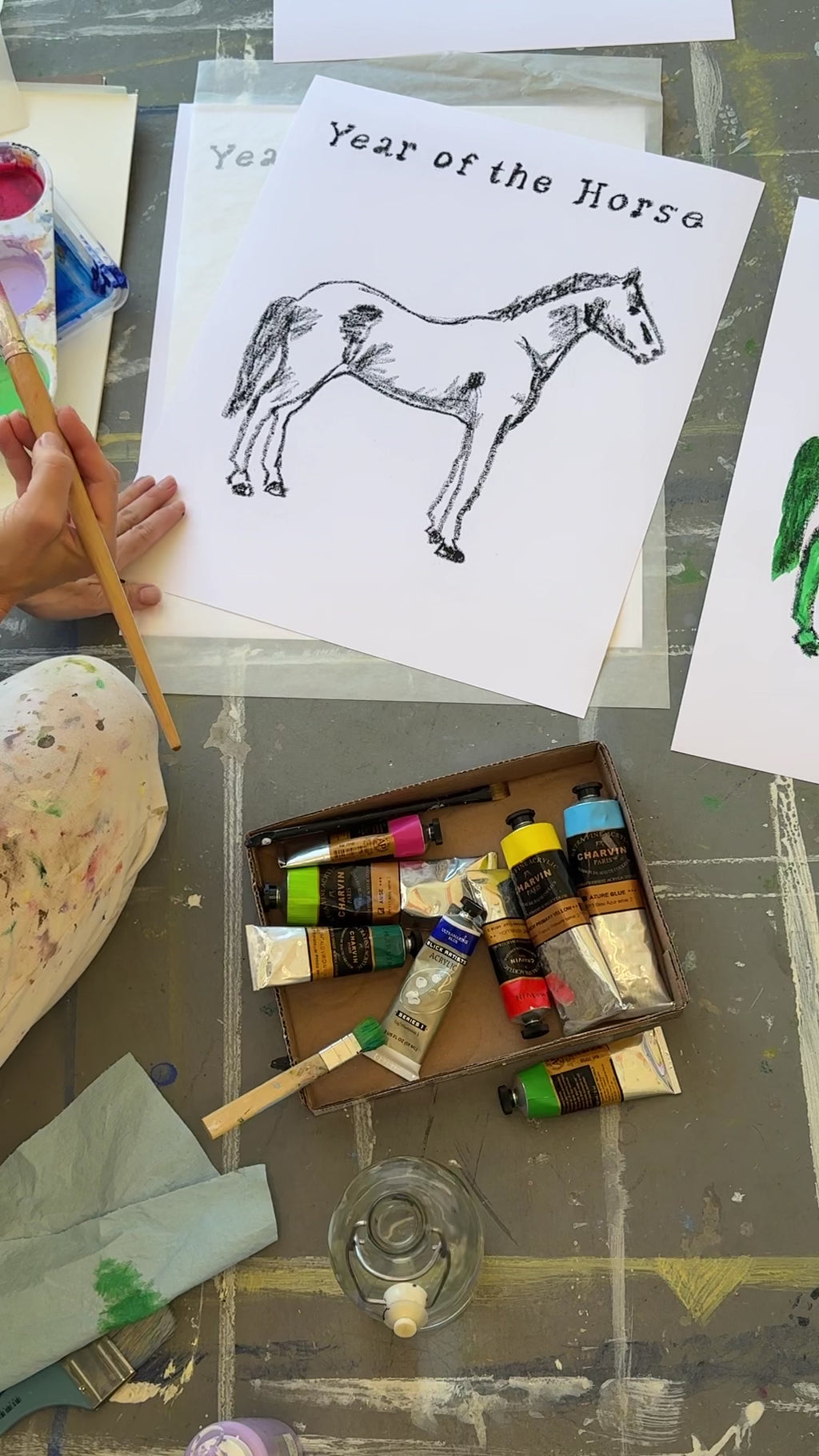 Her new series of four original works, each in a different colorway, was created to celebrate Lunar New Year 2026 — the Year of the Horse.